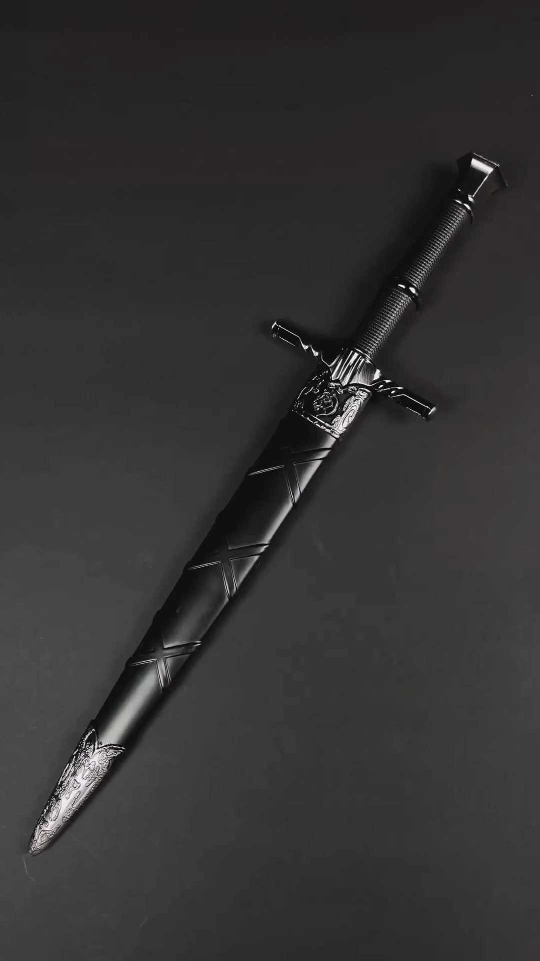 15 3/4" Black medieval dagger w/Black Plastic Scabbard
