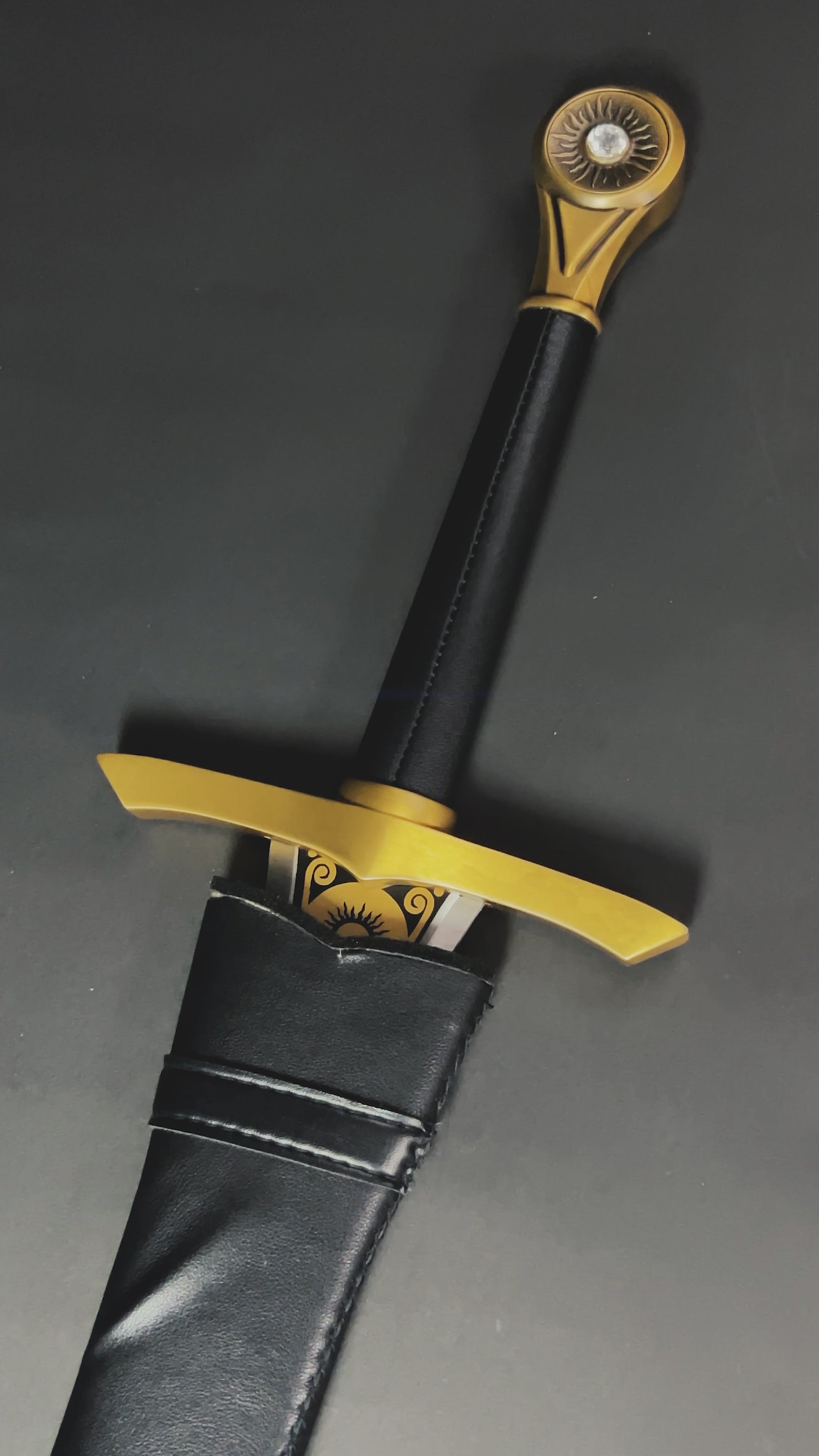 Wield legendary power with this stunning Ring of Power Medieval Sword replica. Measuring 43 1/4" in overall length, this impressive blade captures the iconic design fans adore, complete with an ornate sun-inspired handle that commands attention. Perfect for collectors, fantasy enthusiasts, and display enthusiasts alike, this sword brings cinematic grandeur to any collection. Whether you're recreating your favorite scenes or adding a conversation-starting centerpiece to your space, this replica delivers authentic detail and impressive presence. An essential addition for anyone who appreciates epic fantasy craftsmanship.