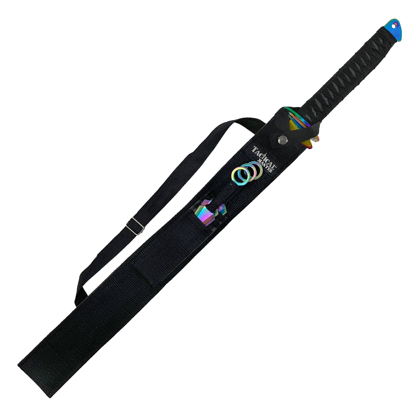 Tired of having the wrong machete for the job? Get the Tactical Master 26" Rainbow Machete and have confidence that it can handle even the toughest tasks. Crafted from durable 440 stainless steel and coated in black, this powerful machete includes a trayed handle and includes 3 throwing knives for added convenience. Equip yourself with the best.