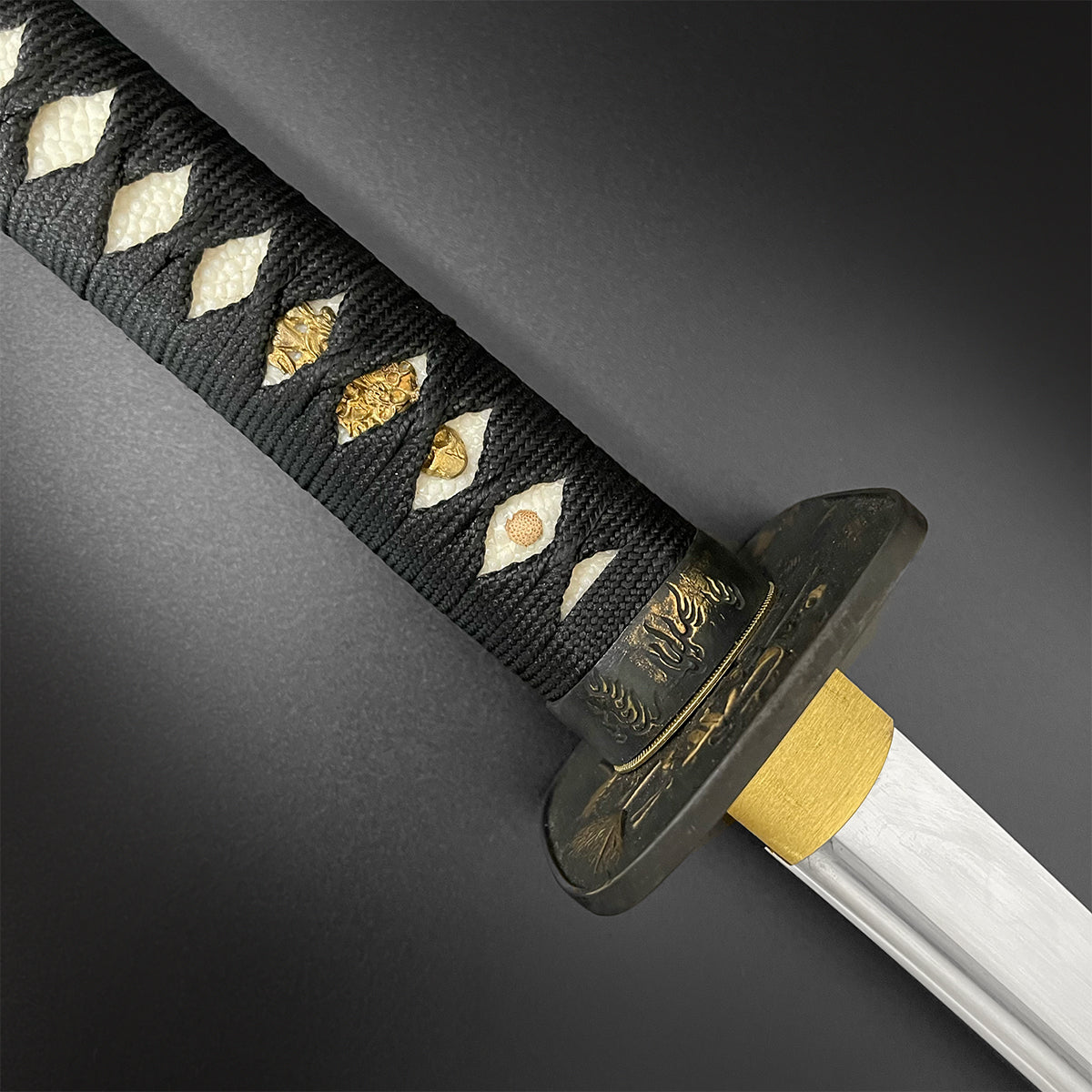 A unique feature is the integrated Bo-Hi on the blade. Bo-Hi is commonly known as blood grooves, but that is a common misconception. The purpose of the Bo-Hi is to help reduce the weight of the katana, it actually has nothing to do with channeling the blood. Making the Katana lighter enables the user to wield the katana better and puts less stress on the hands. Not to mention it benefits some advance cutting techniques that requires the katana to change direction rapidly.