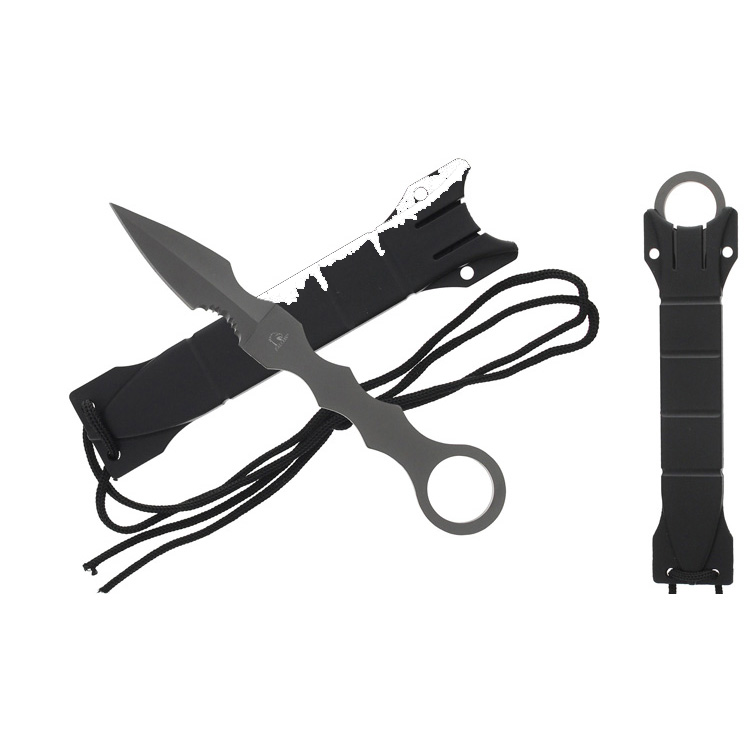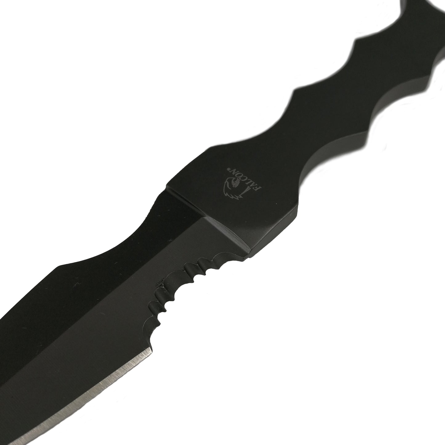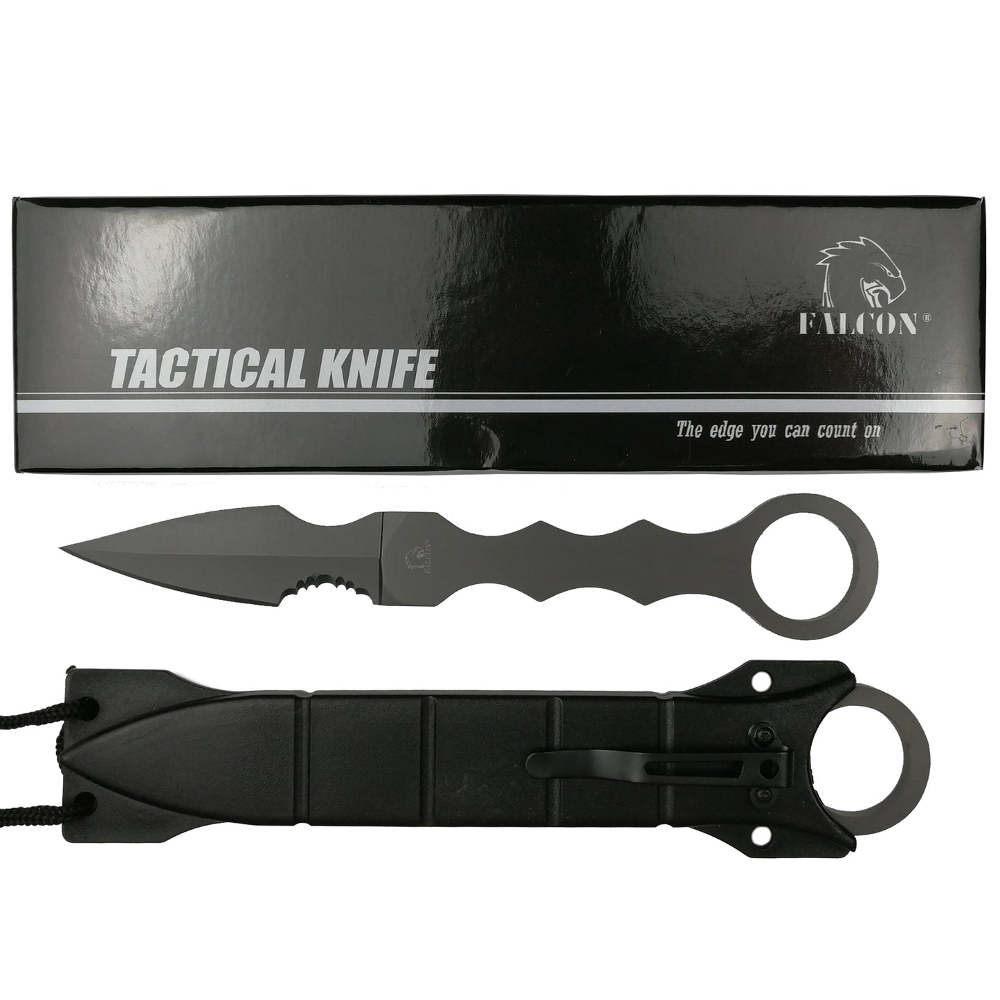 The Falcon 7.5" Gray Tactical Knife is the ideal multi-purpose tool. Crafted with a 440 stainless steel blade and 5mm thick design, it is built to last. The half-serrated blade provides additional cutting versatility while the gray finish delivers a discreet aesthetic. The black covered ABS scabbard offers secure knife storage and easy portability.
