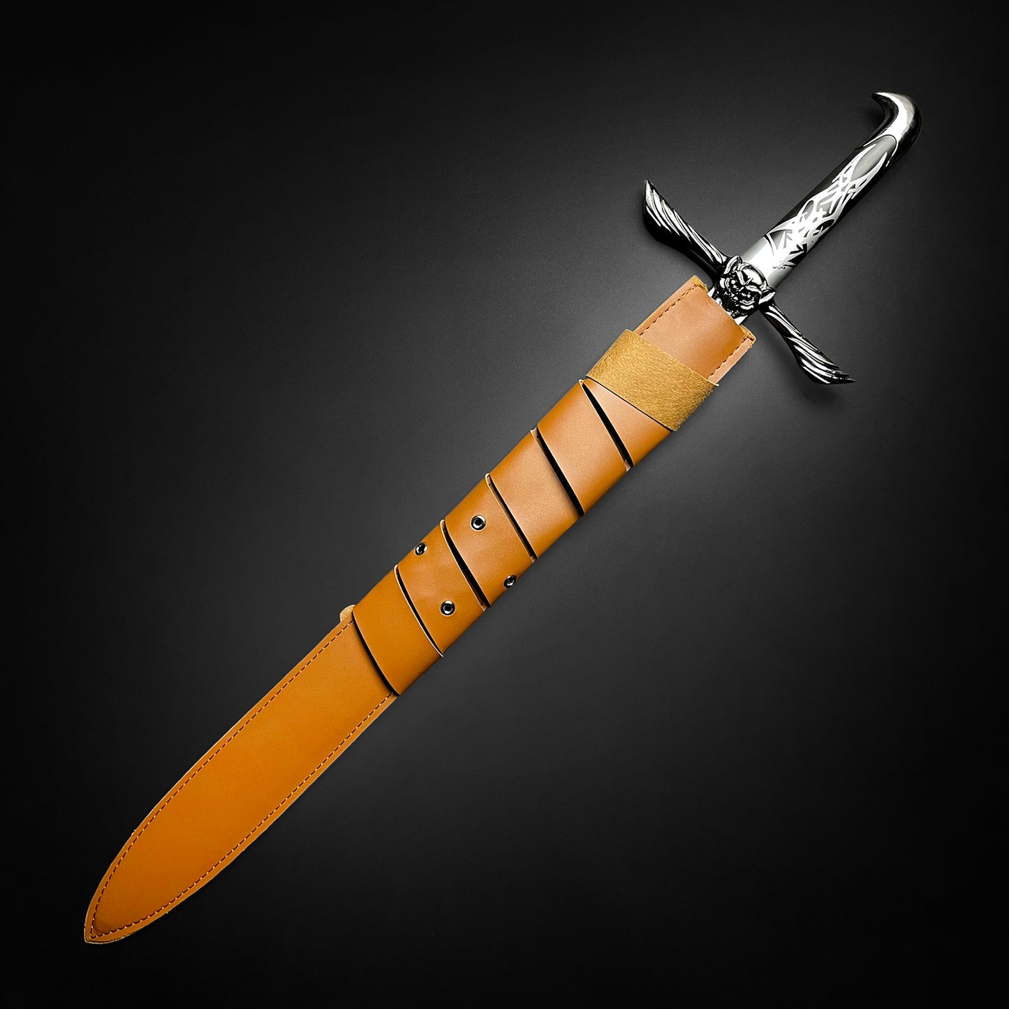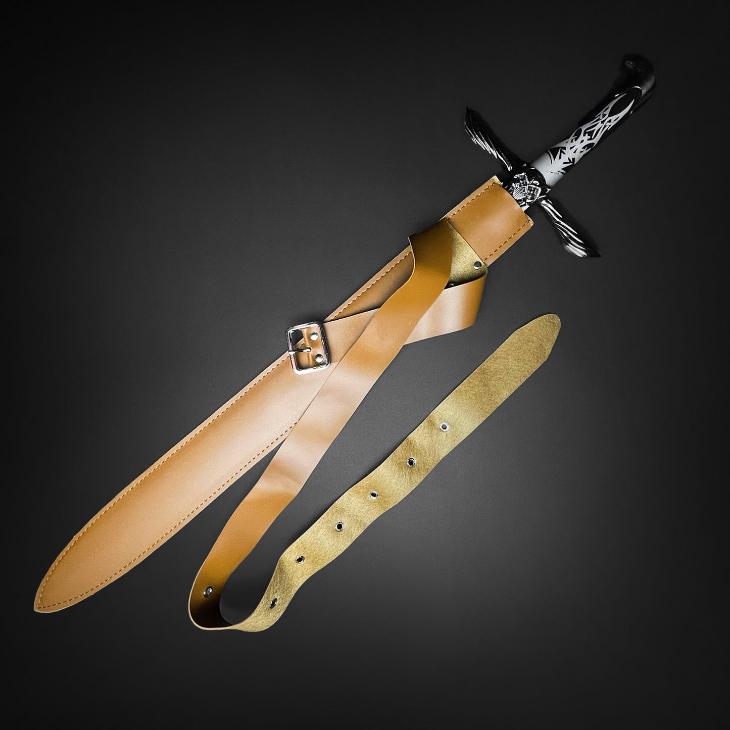 Unlock your inner hero with this 31" fantasy sword. Crafted with metal, it has the look and feel of the classic videogame! With a included scabbard and an overall length of 31", it makes a great accessory for your heroic adventures!