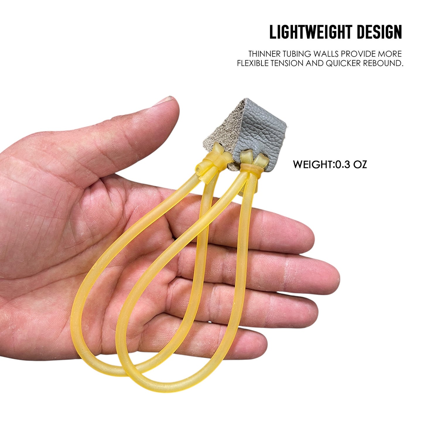 Upgrade your slingshot with our durable Rubber Replacement and Leather Holder! Made with high-quality materials, this set provides a strong and reliable shooting experience. Perfect for hours of outdoor fun and target practice. Elevate your slingshot game with our Slingshot Rubber rope and leather holder!