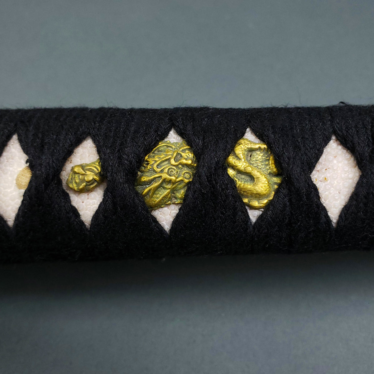 All Musha swords are able to be fully disassembled. Kiku gata style Tsuba, Fuchi, and Kashira all can be swapped out for a different set. Real wood handle is wrapped with traditional cotton.