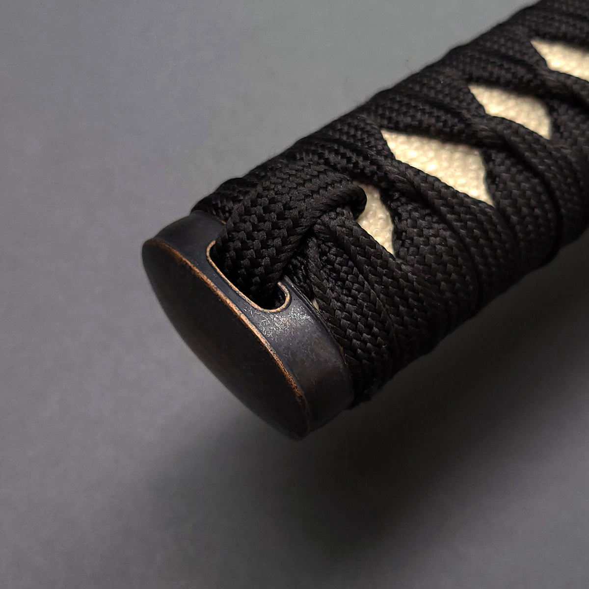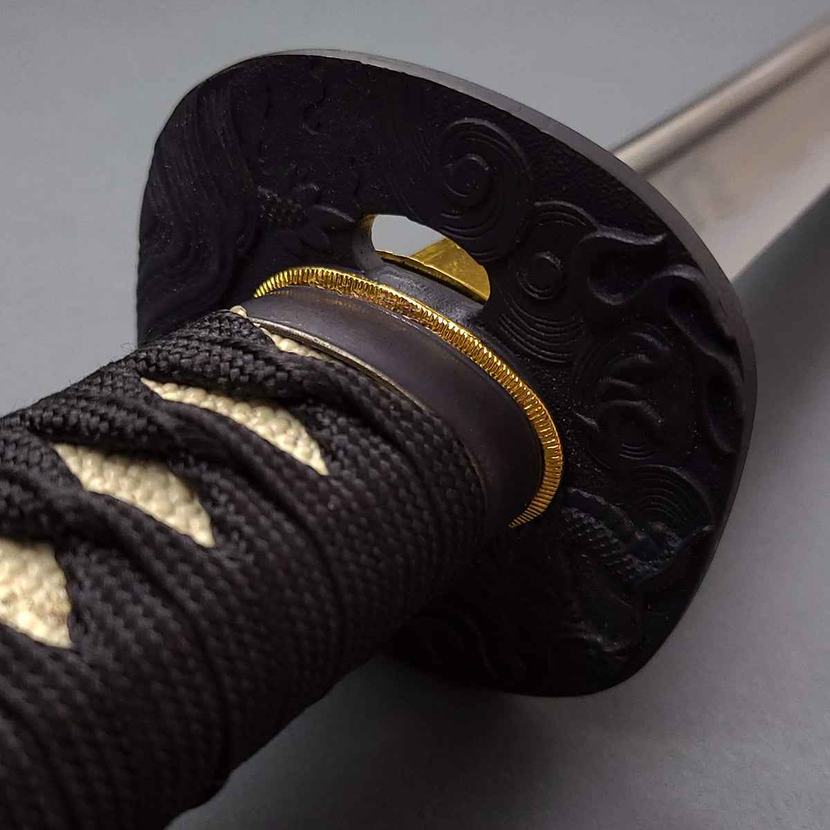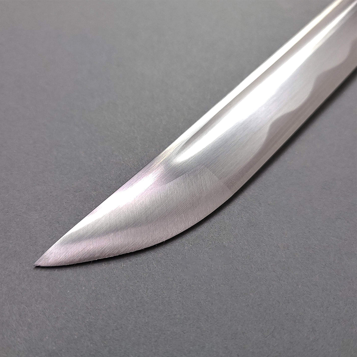 A unique feature is the integrated Bo-Hi on the blade. Bo-Hi is commonly known as blood grooves, but that is a common misconception. The purpose of the Bo-Hi is to help reduce the weight of the katana, it actually has nothing to do with channeling the blood. Making the Katana lighter enables the user to wield the katana better and puts less stress on the hands. Not to mention it benefits some advance cutting techniques that requires the katana to change direction rapidly.